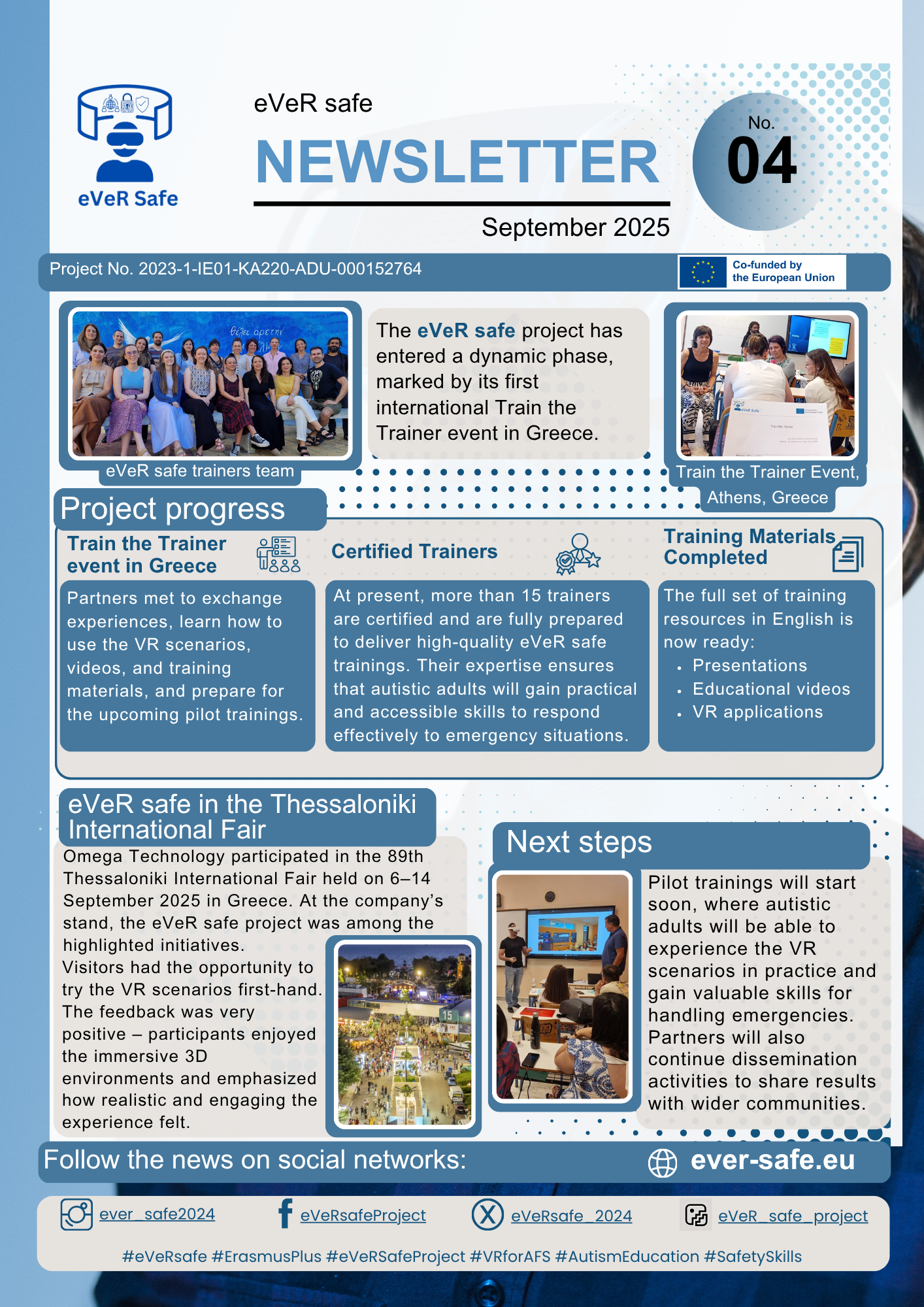 eVeR Safe is addressing safety skills for autistic persons. The project will design and deliver a software system, attractive to young adults, which will leverage the potential of Virtual Reality (VR) technology to help them deal with emergencies that can occur in everyday life. Through VR, autistic people will face conditions that are outside of their typical daily routine and they will learn the procedures that they will have to follow to control the unexpected situation and cope with it safely.